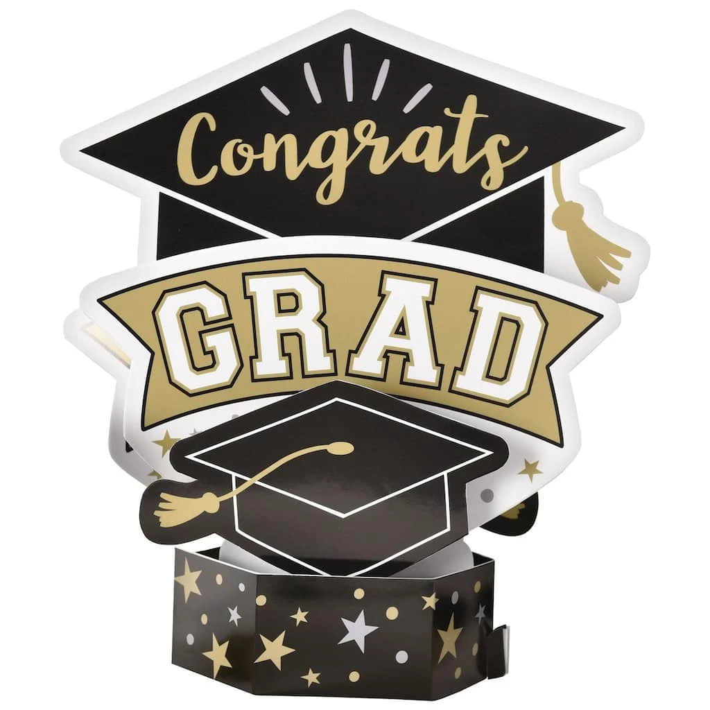 Celebrate your new graduate with this festive pop-up graduation centerpiece. This starry centerpiece reads “Congrats Grad” and easily pops into place, no assembly required.