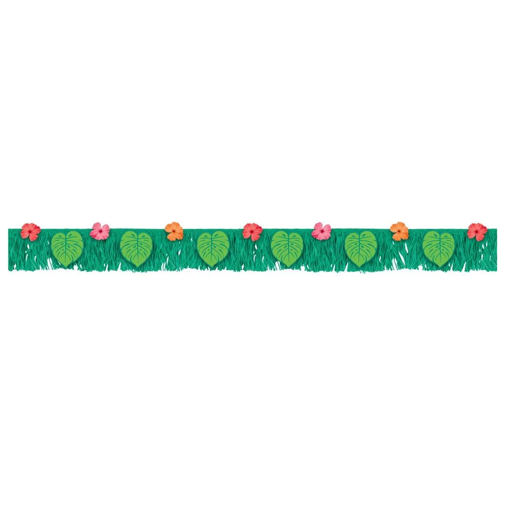 You won’t be-leaf how cute our Tropical Jungle 5.8 ft. fringe paper banner will look in your space. This cute banner features long green fringe and is lined with leaf cutouts and colorful flowers. Hang this banner around any room you want to add a tropical touch.