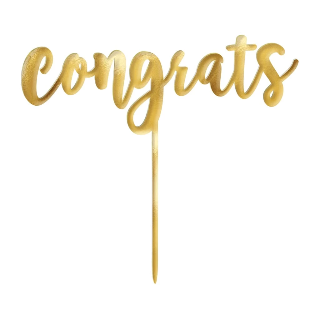 Everyone will be saying congratulation to the new graduate and now the cake can get in on the action with this metallic gold cake topper. Electroplated, gold, and shiny, this cake topper will sparkle as brightly as the graduate’s future! When the cake is gone and the party is over the cake topper can be used as a keepsake or can be easily disposed.