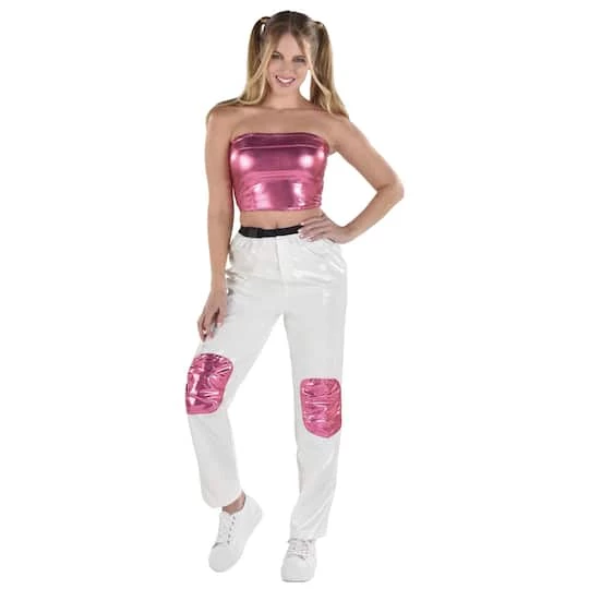 Sing your heart out with this 90’s Pop Princess Kit. This kit has everything you need to transform into a diva of decades past. With a metallic pink crop top and white high waisted pants with metallic pink knees, you’ll be sure to catch the paparazzi’s eye.
