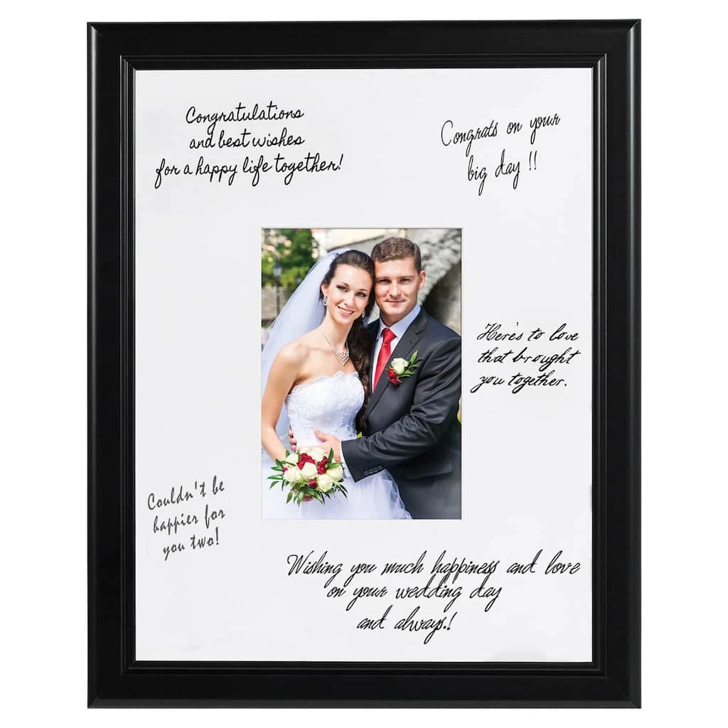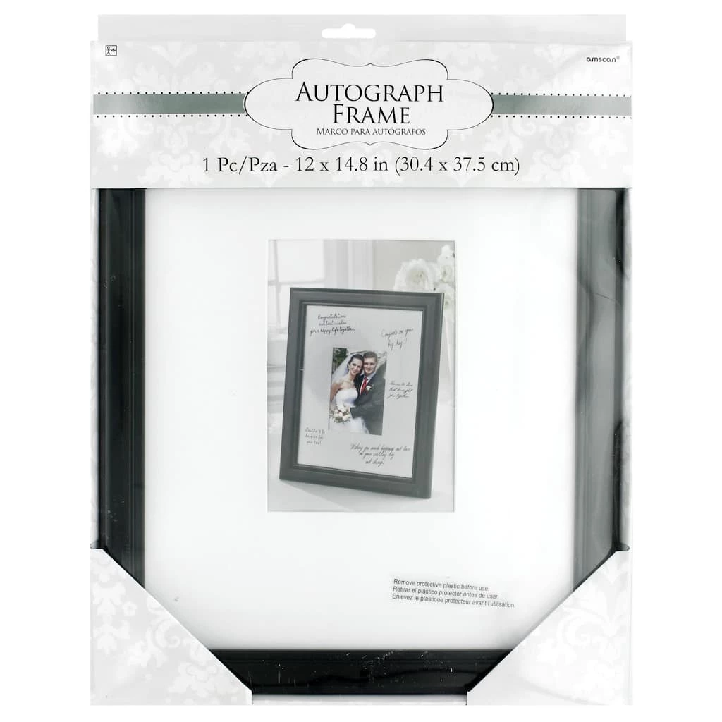 Plastic frame with clear protective plastic pane over an oversized white mat with space for autographs and customized sentiments for any occasion. Beveled 4.25″ x 6.25″ opening fits standard 5″ x 7″ photograph. Can be hung on the wall with either the portrait or landscape hangers. Or use the easel back for a table top display.