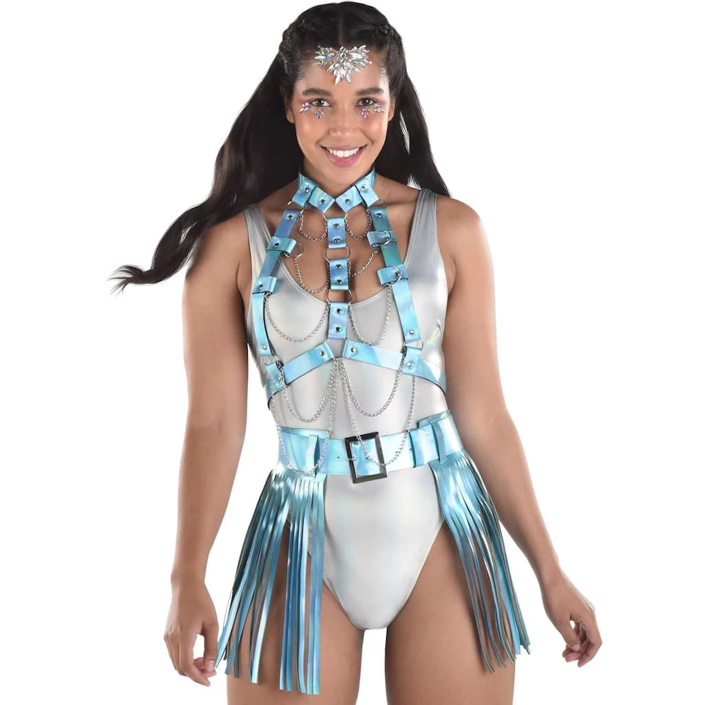 Complete your look with this Festival Belt. This stylish belt goes from neck to thigh and features a fun fringe around the hips.