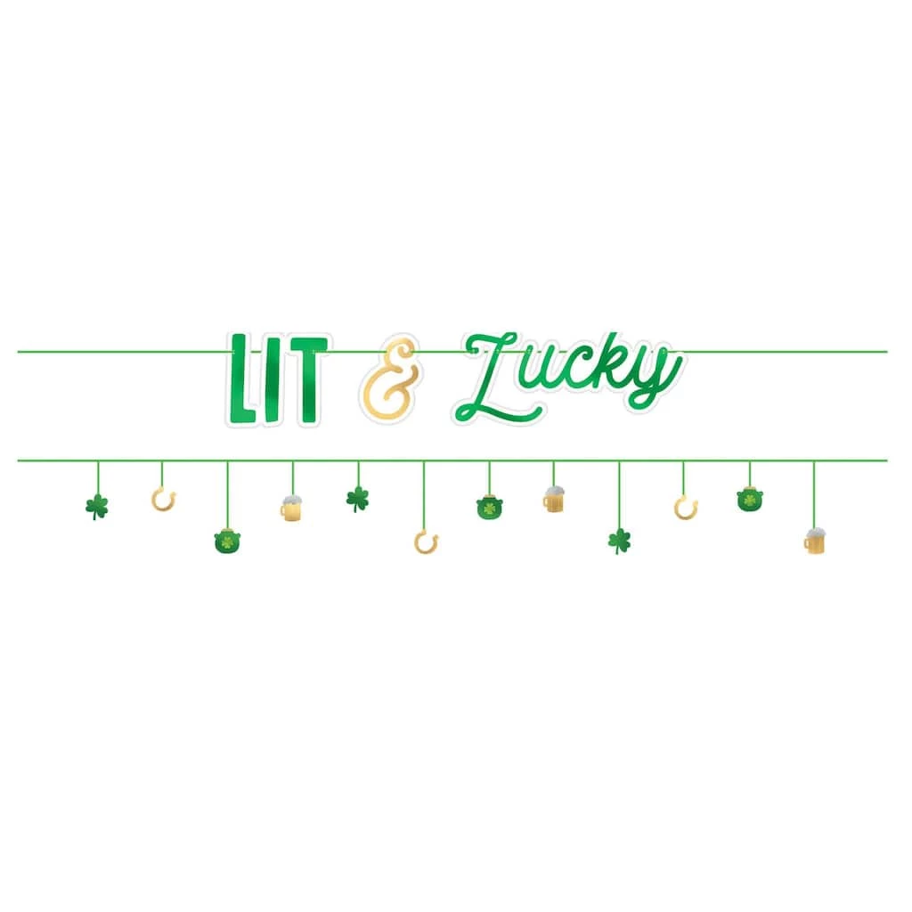 Get ready for a big green shindig and quickly decorate your space with our St. Patrick’s Letter Banner Pack! This pack of banners features one “Lit & Lucky Banner” and one banner with St. Patrick’s Day icons such as shamrocks, horseshoes, pots of gold, and beer. When you hang these banners you’ll wonder how you got so lucky.