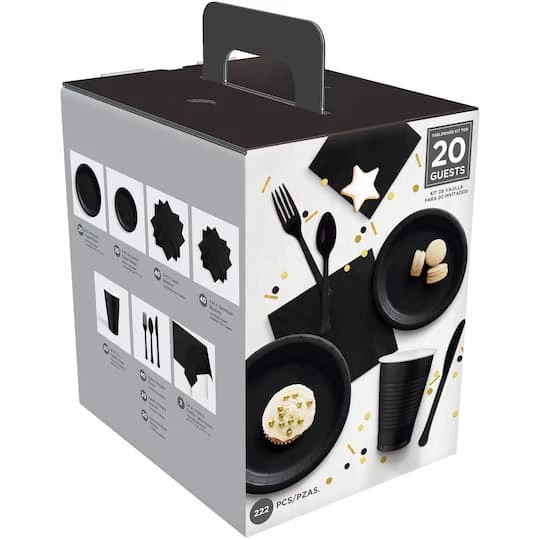 Add some color to any special occasion with this Tableware Kit for 20 Guests! This all-in-one kit includes sturdy paper plates in multiple sizes, lunch napkins, beverage napkins, premium plastic cups, heavy weight forks, spoons, and knives, as well as two premium plastic table covers. This kit has everything you’ll need to create a beautiful table setting.